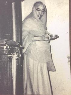 Presently a car door opened and out stepped a clean shaven sanyasi wearing shining orange silken dhoti and a brilliant Vaishnav tilak on his forehead. “Hari Bhai! Hari Bhai!” the sanyasi called out. Hari Gopal immediately recognised Baba and the next minute, both guru brothers were locked in a tight embrace that lasted several minutes. Neither was willing to let go! It was like the meeting of Krishna and Sudama. All the accompanying people simply stood by wide-eyed, awe struck looking at the unfolding scene. Baba, whom no one even dared to touch, was embracing and back slapping these simple rustic villagers. Baba went inside and met Mataji, saying “Ma! Pehchana kaun ..?” She looked at him for a few minutes and said “Baba!” “Ma! You looked after me so well when I was here. I will always be indebted to you and Hari Bhai. You will never want for anything”, Baba blessed them profusely. Baba turned to Braj Gopal, then in his 20s, and hugged him fondly. “I didn’t even have a penny to buy you a candy” he recalled. Baba spent some time talking with them and then took Braj Gopal inside alone. Braj Gopal said Baba pointed to the chakra on the centre of his shaven head and told him, “See this? Now you know who I am. Ask me any boon today. It will be granted..” Braj Gopal was overawed and simply offered his pranams to Baba. Baba blessed him abundantly saying “You will never lack for anything; all your good intentions (sankalp) will be fulfilled.” After spending some time with them, Baba invited them all to visit his ashram in Delhi and took leave. Braj Gopal recounted that they went to Baba’s ashram in Kundan Farm Delhi a couple of times in the following months, where they were warmly welcomed and enjoyed Baba’s warm hospitality. Patting the bed beside him Baba told Braj Gopal, "Aao mere paas baitho..." (Come, sit near me here). Braj Gopal demurred but Baba said "Arey! tu toh mera beta hai! Baith jao" (You are my son. Sit, sit). Baba then showed Braj Gopal his special shaligram shilas, which were normally kept inside. One particular shaligram, Braj Gopal recalled, was soft and spongy to the touch. Baba insisted that Braj Gopal hold it in his hands.