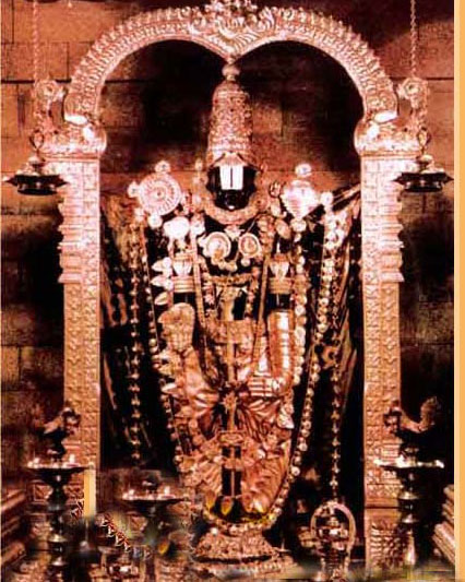 There are hundreds of amazing stories associated with Baba's life. This too is one such story that begins in September 1997 when Baba visited Hyderabad on his way to Tirupati. It was the first of a series of Divine visitations, when the first of the Shaligram Shilas started getting attracted to Baba. At Tirumala, Baba was to perform a special Seva of Venkateshwar Balaji. He went to Tirupati from Hyderabad with our entourage of around 22 devotees, from Hyderabad & Calcutta. No accommodation was available that day at Padmavati Guest House due to a wedding taking place there. While Baba was waiting in the car, an unknown person rang up the executive at the Guest House enquiring if Baba had arrived, and to immediately arrange a suitable cottage for him. Such was the magic of this phone call, that Gandhi Chaudhury came running to Baba saying that a cottage had been organised for Him. The cottage was a beautiful one, eminently to Baba's liking. He spent a happy day there, regaling his devotees with wonderful stories transporting them to a world of joyous bliss. At 11 p.m. Baba was getting ready to be present for Suprabhatanm and Tambul Seva which begins in the wee hours of the morning. The devotees were also at their respective Guest Houses, getting ready to assemble at Baba's cottage by midnight. Only Mridula (Baba's attendent on this journey) was present with Baba, while Sailesh was outside in another room. Just then, a Mahapurush from Vrindavan entered the cottage. He was dressed in pure white and had a remarkable presence. As he walked majectically towards Baba's room, the doors opened of their own to welcome him in. Baba was busy with his tilak seva at that time. The Mahapurush praised the beautiful way in which Baba adorned his forehead, and requested Him to apply the tilak for Him too. Baba happily applied the Tilak. The Mahapurush asked him "Don't you want to know who I am ?" Baba, who knows all, just smiled and asked him what he could do for him. At this, the Mahapurush said, "I have come to claim a special favour of you. There is a beautiful Kanjeevaram Vastra of yours in your suitcase. I want you to give that to me." Baba called for Mridula to give Him the keys to open the suitcase. But the "Visitor" waved her away, and opened the locked suitcase magically without any key. He took out the Vastra, and gave it to Baba with a request to hand it over to him. Baba then handed over the beautiful Kanjeevaram silk bahirvas and angavastra to Him. The Sage further told Baba that he had brought the rarest of gifts for him, and handed over the Venkateshwara Shaligram, He also told him that, soon, several more shaligram shilas would come to him, and he should keep this shila very carefully. Baba told him that He was a devotee of Shaligram Shilas from His childhood and would like to see all the types of Shilas that are there. The Sage laughed and told Him that soon He would be blessed with all types of Shilas. He would shortly get more Shilas in Haridwar. Saying that, He did pranam to Baba and left. No sooner had He left than the devotees started arriving and heard of this divine visitation. Those fortunate persons who had darshan of Baba at that time still speak of the radiance emanating from Baba that night. Shortly, the priests from the temple came and ushered Baba into the Sanctum Sanctorum through the inner door for Tambul Seva. And what does Baba see ? Venkateshwar Balaji was adorned in the same Kanjeevaram silk that the mysterious sage had taken from Baba a short while ago! The readers would by now have no doubt regarding the identity of the sage. While Baba performed the puja the garland from Lord Balaji's neck dropped around Baba's neck. This miracle was witnessed by all the Brahmins and devotees present there with stunned amazement. Pandemonium broke out as everyone rushed to get a flower from the divine garland.