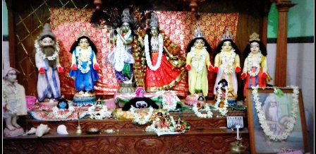 Gurudev's account of his meeting with Srila Vamsidas Babaji Maharaj "During my stay in Sridham Nabadwip, I once gave a discourse on Srimad Bhagavatam. At that time there lived an aged Maha Vaishnav there by the name of Srila Vamsidas Babaji Maharaj. After hearing my discourse he invited me to his ashram to give discourses in the month of Kartik (Oct/Nov)”. “Vamsidas Babaji was such a great devotee that vegetables for his seva would come floating by themselves in the waters of the Ganga near his ashram. He would collect them and cook them for offering to the deity. I went to his ashram in the month of Kartik. A young girl around 16-17 years of age would come to the ashram everyday and cook the bhog prasad (food offering) and go away”. “One day I asked Vamsidas Babaji who the girl was. He replied, ‘She lives close by’. On another day I told the girl, ‘I would like to go to your house’. The girl said, ‘Later, not now’. This way many days passed”. “The day before I was to leave, I went along with the girl saying, ‘Today I will definitely visit your house’. After going some distance, near Sri Narasingh Dev’s temple, the girl vanished. I simply couldn’t understand which way she had gone. I enquired from the local people about the girl but no one could say anything. I returned to the ashram and narrated everything Vamsidas Babaji. He laughed and said, ‘Oh! Didn’t you recognise her? It was Devi Lakshmi who came and did your seva. She resides in the temple of Sri Narasingh Dev. You will not see her again’.”