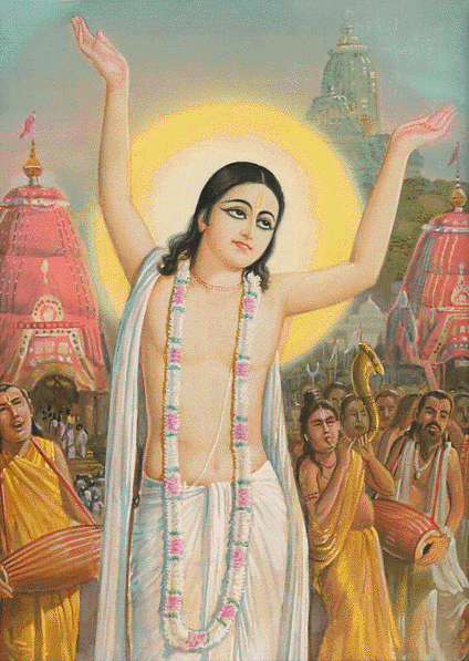 varnam tvishaakrishnam And Tyaktvaa su-dustyaja surepsita raajya lakshmim (SB 11.5.32-34) May the fire of the sankirtana yagna, which is adorned with seven tongues and kindled by highly intelligent persons, continually remain alight in Sri Chaitanya Matha. Sri Krishna Chaitanya sankirtana authomatically achieves everything that is accomplished by performing intense meditation (maha dhyana) in Satya Yuga; grand and elaborate sacrifices (maha yagna) in Treta Yuga and opulent deity worship (maha archana) in Dwapara Yuga. In Satya yuga, when religion stood on all four legs (austerity, cleanliness, mercy and truthfulness), only meditation was performed. In Treta yuga, when religion stood on three legs (cleanliness, mercy and truthfulness), only sacrifice was performed. In Dwapara yuga, when religious principles stood on two legs (mercy and truthfulness), only deity worship was performed. But in Kali yuga (when religion stands only one one leg – truthfulness), the source of all incarnations Sri Gaursundara, appears and delivers the people by manifesting sankirtana. He thus gives a person the opportunity to simultaneously perform intense meditation, magnificent sacrifice and opulent worship of the deity - through one simple activity. One cannot serve the combined form of Sri Radha Govinda (i.e. Mahaprabhu), by any means other than sankirtana. Nor can one serve Sri Radha Govinda simply by performing archana. They can be served only by maha archana, that is, sankirtana. In the same way, the gopis cannot be satisfied by the yogis’ practice of meditation. Meditation is appropriate in relation to a remote entity, who is hidden and beyond reach; it is inappropriate in relation to a person who has been easily and completely made one’s own, and whom one holds in constant embrace. Krishna appeared towards the end of the Dwapara yuga and projecting Himself as the object of devotion, personally spoke such words as: “maam ekam sharanam vraja” “surrender only unto me” and “aham hi sarva yagnaanaam bhoktaa ca prabhur eva ca” “I alone am the enjoyer and master of all sacrifices”. But as the darkness and intoxication of atheism became prominent, the multitude of souls, who were driven by demonic intelligence, thought that the autocrat Purushottama, the Supreme Personality of Godhead, Sri Krishna, had spoken these words out of ego and pride. Thus they deviated from the path of spiritual welfare. No one in the present age would care to listen to Sri Krishna’s words if He simply appeared again in the same form. It was essential that He appear combined with Sri Vrishabhanu-nandini and thereby avoid the perception of the public that He is autocratic. Let the celebrations
